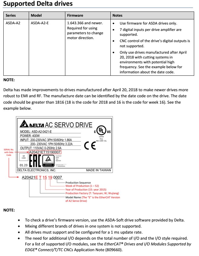 Delta EtherCAT Drives Supported by Hypertherm EDGE Connect/T/TC CNCs.