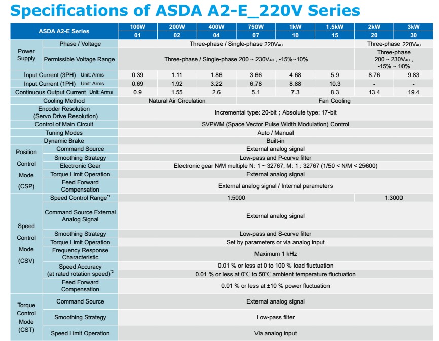 We have below Delta A2-E servo drive with suitable motor.