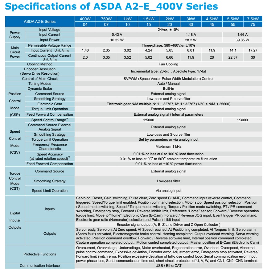ASD-A2-2043-E  2kw      ASD-A2-3043-E   3kw    ASD-A2-4543-E   4.5kw