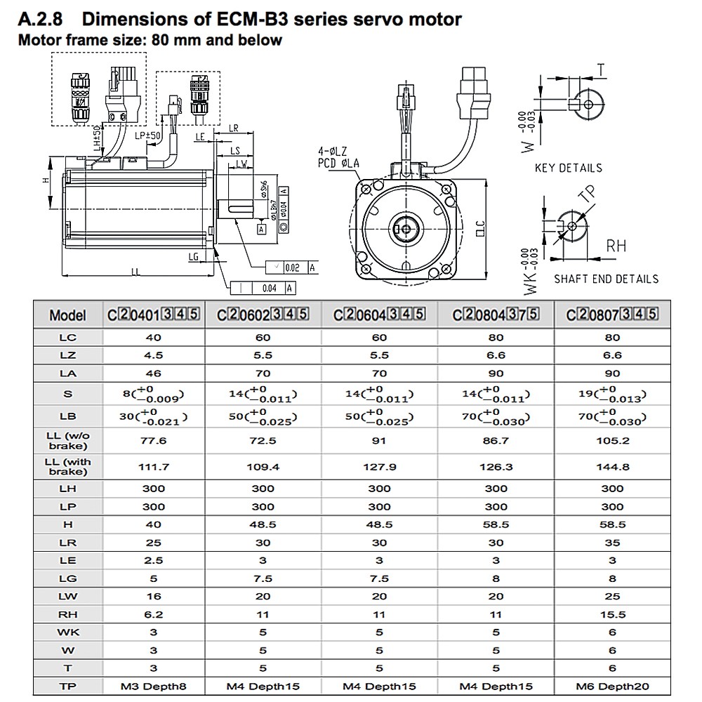 Delta ASDA-B3 AC Servo Drive 220V 80mm Medium Inertia ASD-B3-0721-L ECM-B3M-C20807RS1 ECM-B3M-C208070SS1 Brake