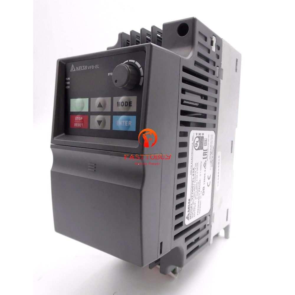 The VFD-EL series is multiple functions new generation micro type AC drives. It has built in EMI filter, RFI switch, easy DC bus sharing for side-by-side installation, high precision current detection, overload protection, and a built in keypad.